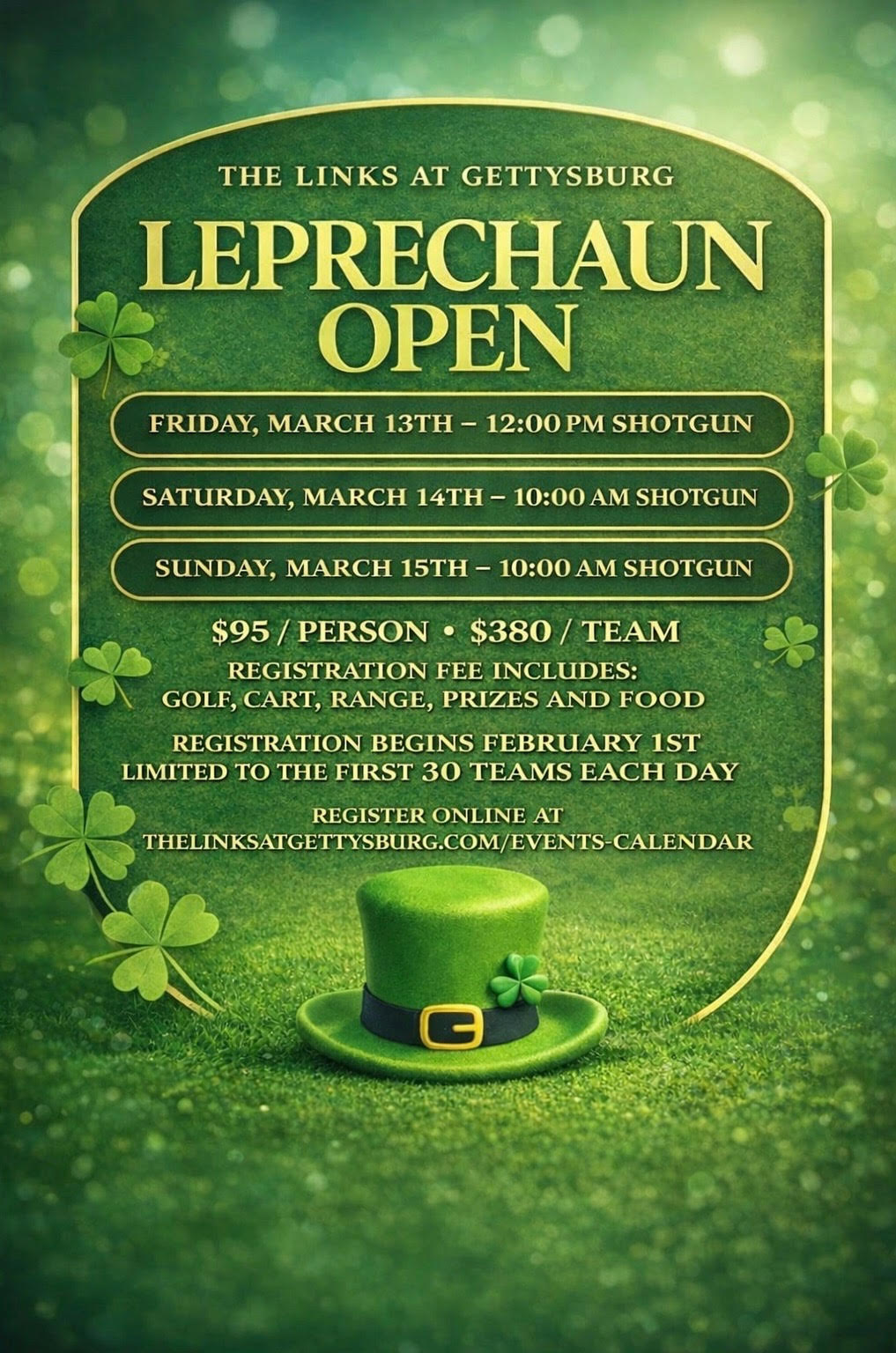 March 15th Leprechaun Open Registration