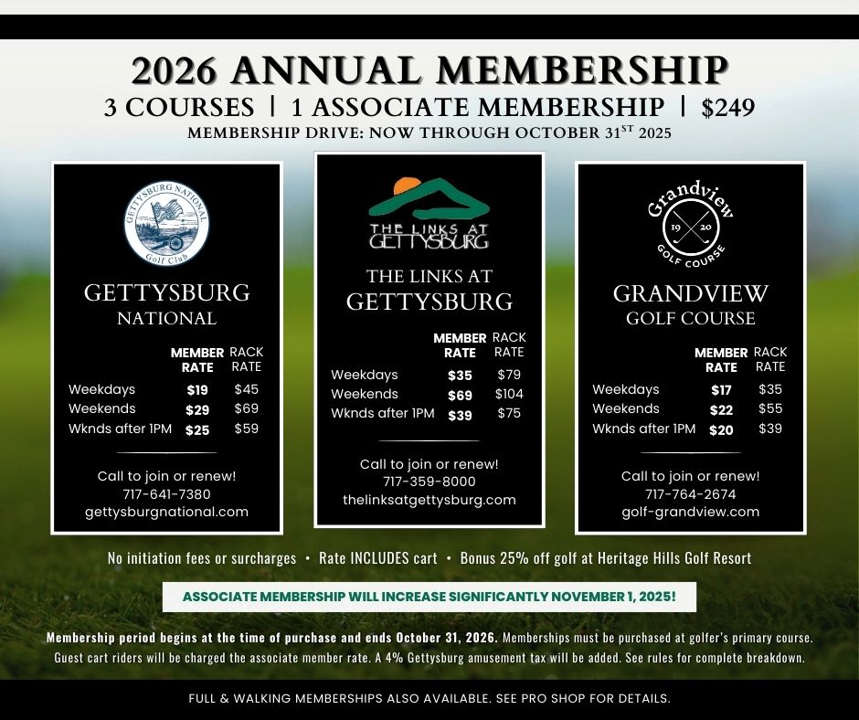 2026 AssociateMemberships The Links at Gettysburg Become a Member of 3 Area Golf Courses for Just $249! Contact us today PhoneThis field is for validation purposes and should be left unchanged.Contact InformationName* First Last Email* Phone*Additional Questions for our StaffAdditional InformationConsent* I agree to receive communications from The Links at Gettysburg and agree to the terms listed in the privacy policy.CAPTCHA